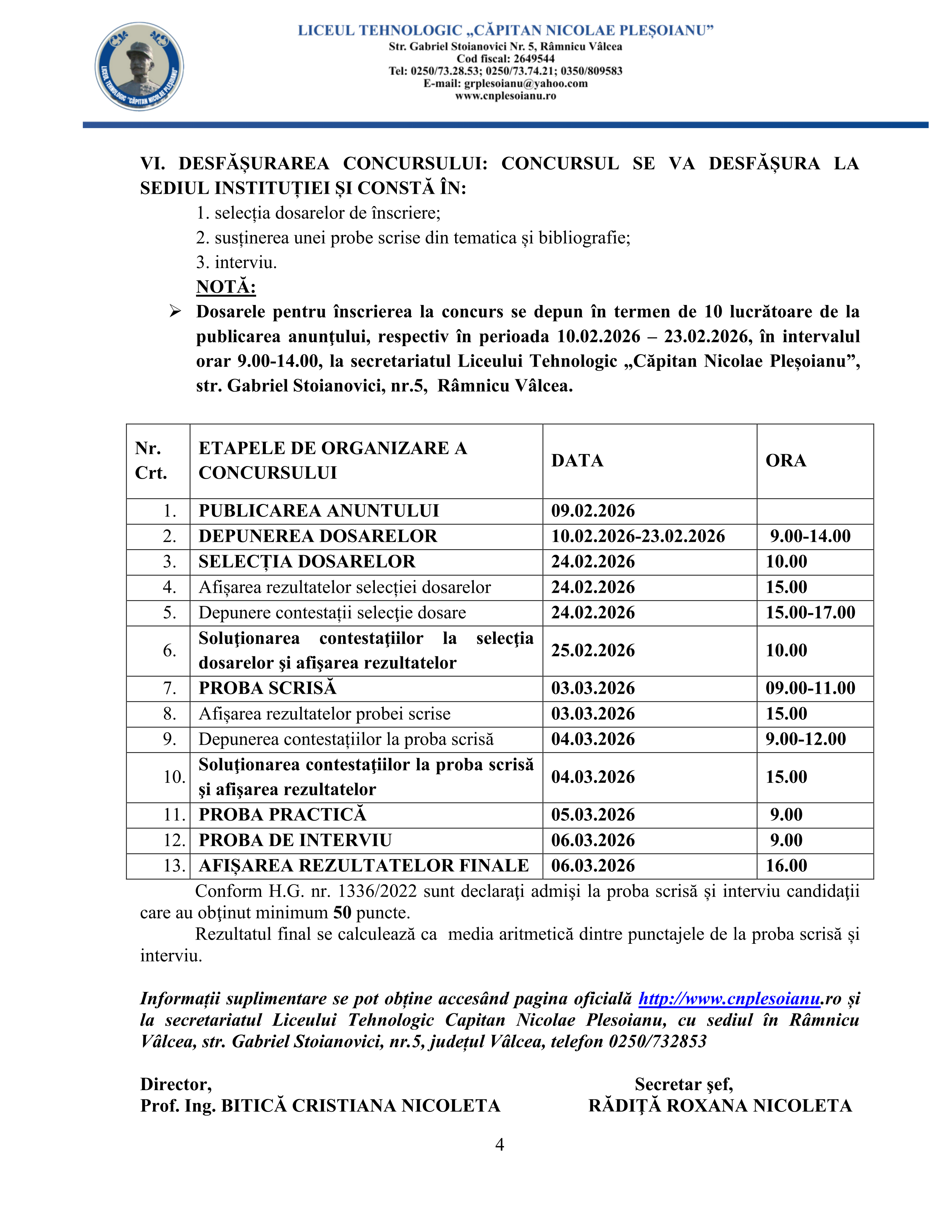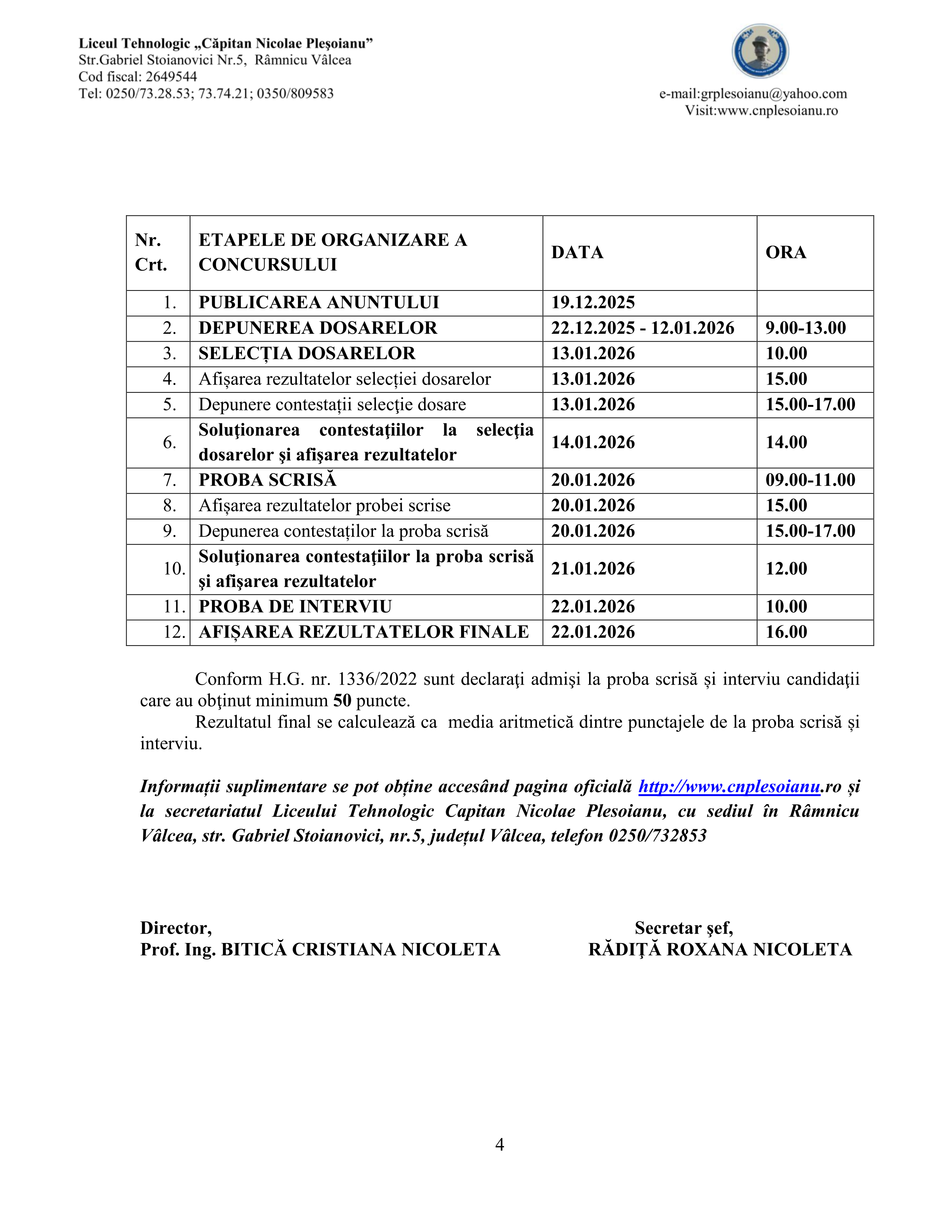 REZULTAT CONCURS DE OCUPARE A POSTULUI