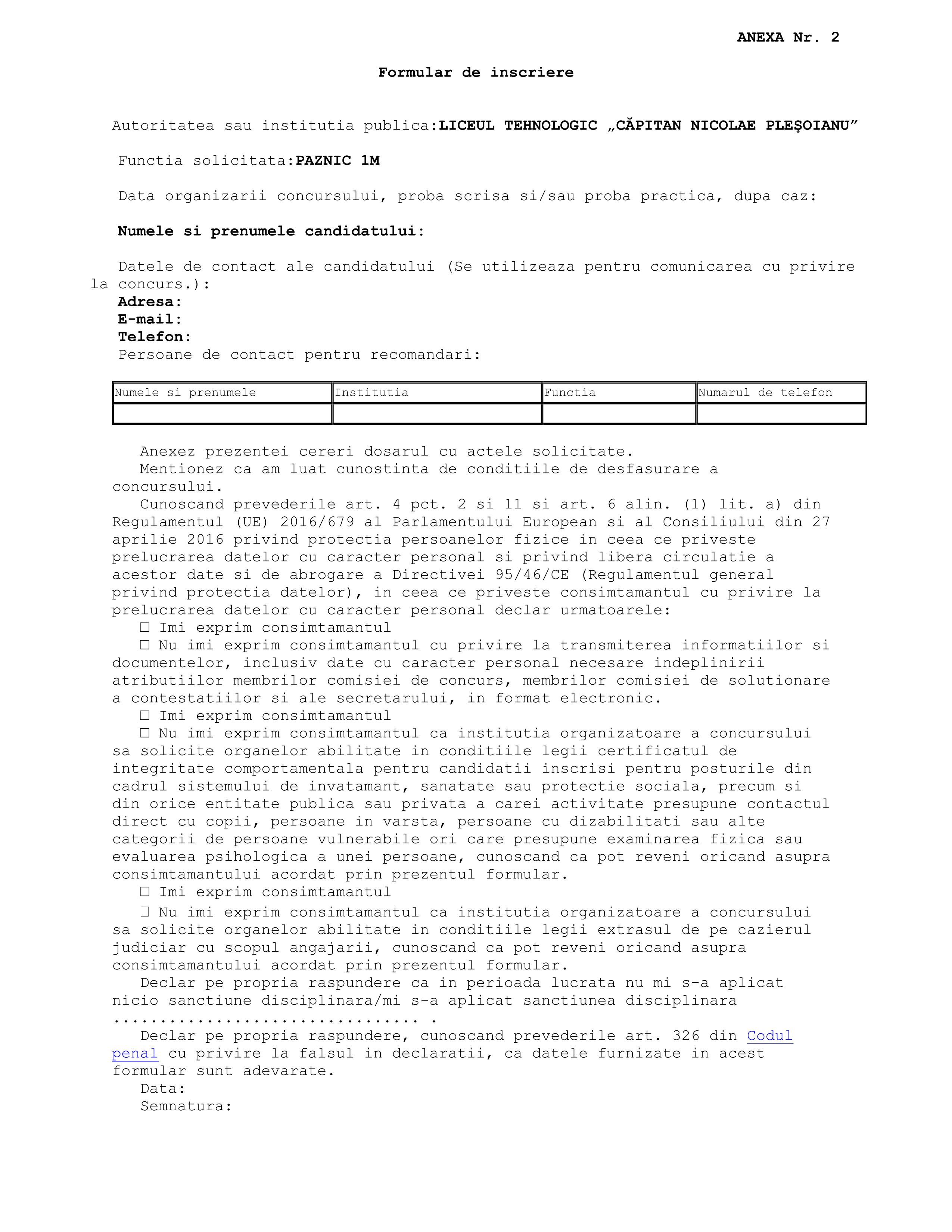 FORMULAR INSCRIERE CONCURS INFORMATICIAN