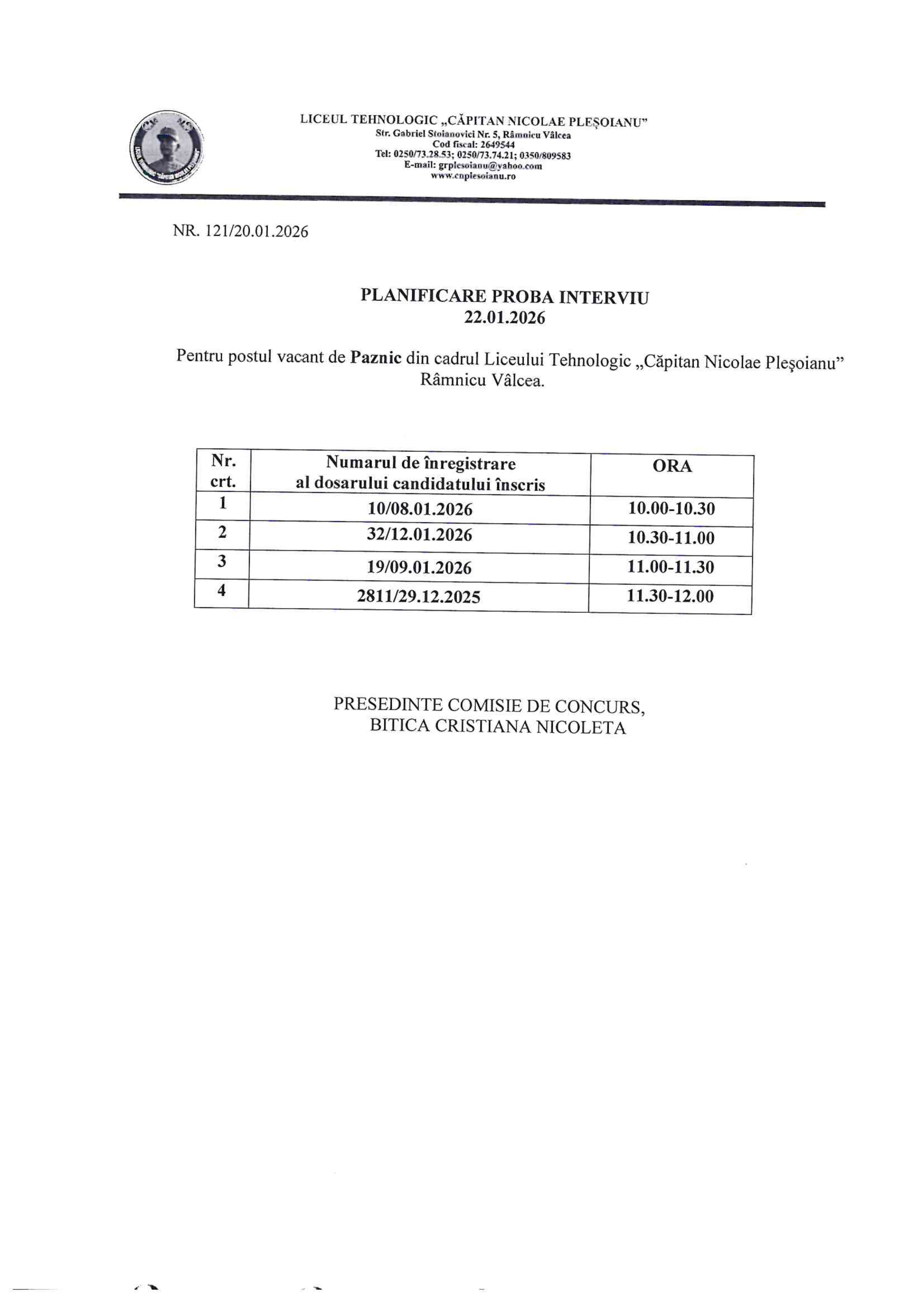 REZULTATE PROBA INTERVIU - POST PAZNIC - 2026